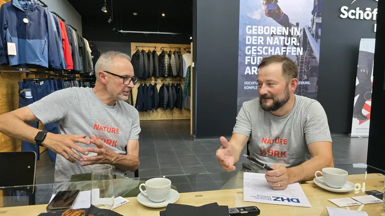 Von den Bergen ins Handwerk: Mit Schöffel Pro bietet der Outdoor-Spezialist jetzt auch Berufskleidung. Inhaber Peter Schöffel und Geschäftsführer Thomas Bräutigam erläutern, warum Wertschätzung für Mitarbeiter auch etwas mit Arbeitsbekleidung zu tun hat.