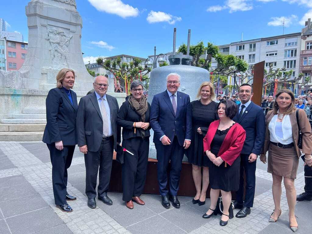 Beim Festakt zum Jubiläum der Paulskirchenversammlung am 18. Mai wurde die Jahrhundertglocke öffentlichkeitswirksam von Frank- Walter Steinmeier, dem zwölften Bundespräsidenten der Bundesrepublik Deutschland, mitsamt einer Delegation besucht.