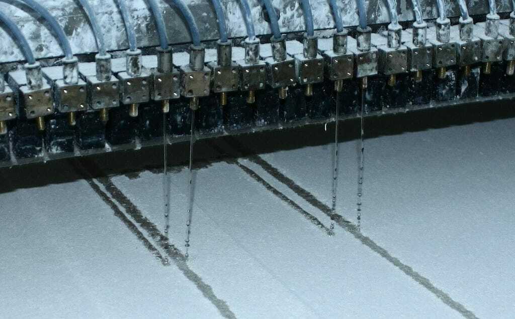 D-Shape2Der Druck bis zum fertigen Bauteil verläuft in hunderten von Durchgängen. Nur etwa dreieinhalb Minuten benötigt das Gerät für eine zehn Millimeter dicke Schicht von 54 Quadratmetern. Ist eine Ebene fertig, hebt sich der Druckkopf ein kleines Stück nach oben und gibt die nächste Schicht aus. Über drei Meter kann das Bauteil pro Tag in die Höhe wachsen. Für den gesamten Druck der einzelnen Bauteile und deren Zusammensetzung planen die Architekten ein halbes Jahr ein.