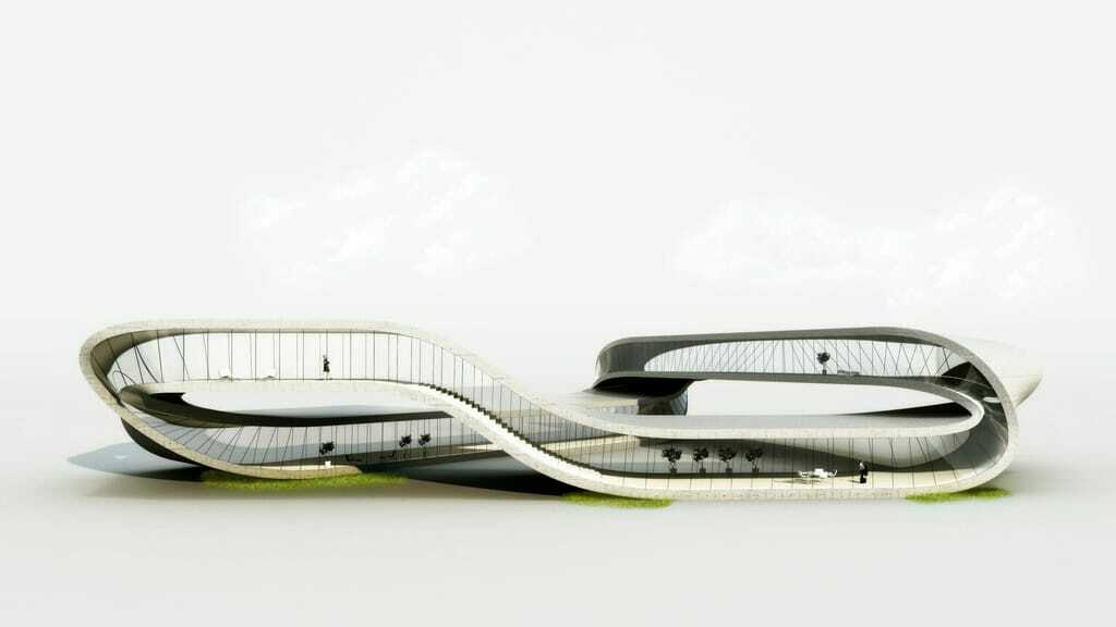 Das so genannte "Landscape House" ist architektonisch hoch anspruchsvoll. Angelehnt an das bekannte Möbiusband gehen Böden, Decken und Wände nahtlos ineinander über. Dieser Fluss der Formen soll an eine endlose Landschaft erinnern.