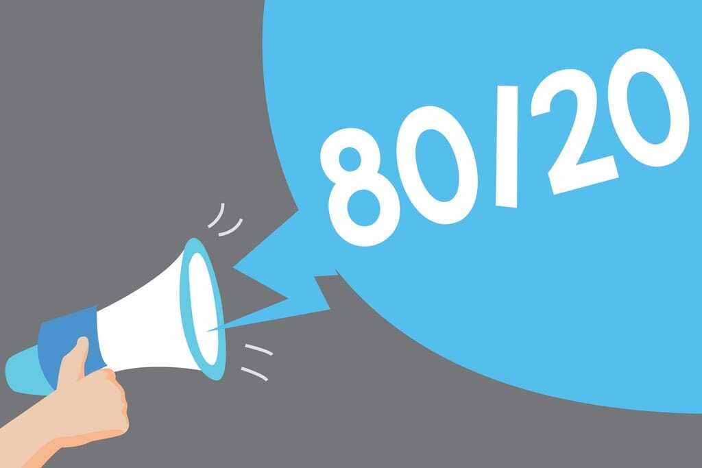 Illustration: Lautsprecher und Sprechblase mit Inschrift "80/20" (Pareto-Prinzip)