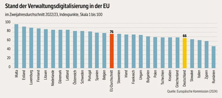 Die Komplexität der föderalen Strukturen und starre Verwaltungstraditionen sind laut dem Kronberger Kreis jedoch nicht die einzigen Gründe, weshalb Deutschland bei der Verwaltungsdigitalisierung weiterhin zu den Schlusslichtern in Europa zählt. Lars P. Feld, Sprecher dieses wissenschaftlichen Beirats der Stiftung Marktwirtschaft, findet das deutsche Abschneiden bedenklich: "Dies bedeutet nicht nur, dass die Handlungsfähigkeit der Verwaltung und Politik zunehmend eingeschränkt wird, sondern es entstehen dadurch entscheidende wirtschaftliche Wettbewerbsnachteile."