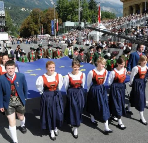 Beim großen Landesfestumzug mit rund 25.000 TeilnehmerInnen im September verwandelte sich die Innsbrucker Innenstadt in eine festliche Bühne. Foto: Reisberger