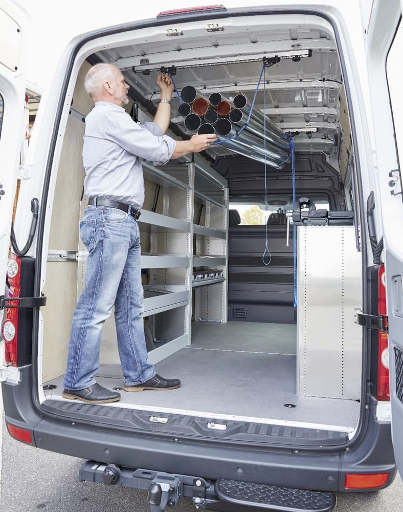 Der Platz im Laderaum ist kostbar. Warum also lange Güter wie Rohre oder Leitern nicht unter dem Dach verstauen? Mit Trans-Safe-Carrier gelingt es.