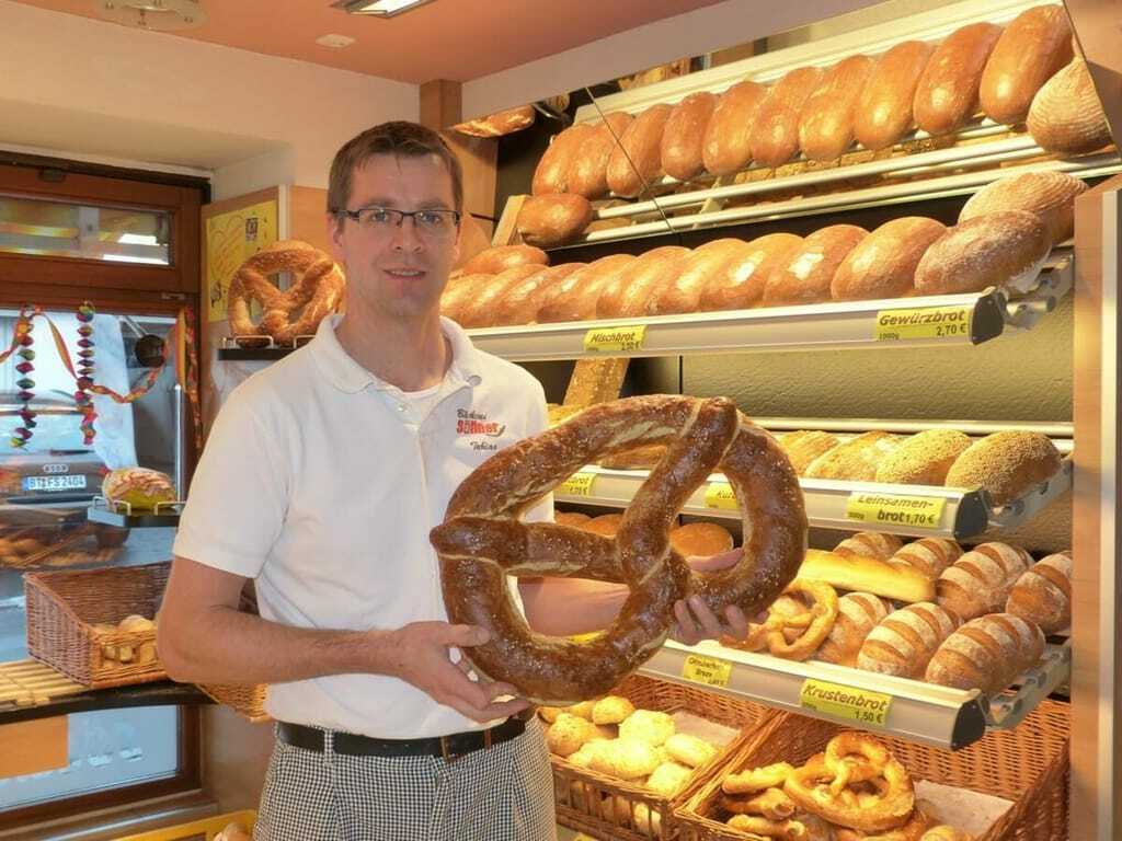 "Die Anisbrezel hat bei uns seit Gründung der Bäckerei im Jahr 1913 Tradition", so Bäckermeister Tobias Göhl (38) von der Bäckerei Söllner in Ebnath im Fichtelgebirge. Damit hat das Zunftzeichen der Bäcker das üblicher Weise als Laugenbrezel mit rund 55 Gramm Gewicht verkauft wird im Fichtelgebirge eine ernstzunehmende Konkurrenz.