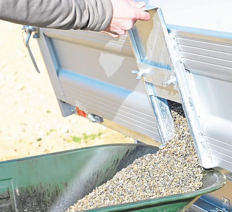Beim Transport von Schüttgut sorgen zusätzliche Scharniere für mehr Stabilität der Bordwand. Der über die gesamte Breite verlaufende Stahlboden verleiht dem Anhänger Stabilität und lässt sich besonders leicht reinigen. Auch die Heckbordwand ist mit Stahl beplankt.