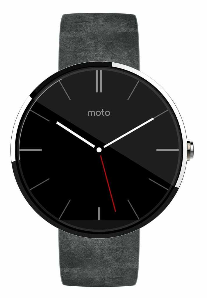 Wie LG setzt Motorola bei seiner Smartwatch auf einen rundes Gehäuse . Allerdings ist die Fläche nicht komplett mit Bildschirm ausgefüllt, am unteren Rand verdeckt eine kleine schwarze Fläche die Steuerungstechnik der Uhr. Das trübt etwas das gelungene Design mit Edelstahlgehäuse und Lederarmband.