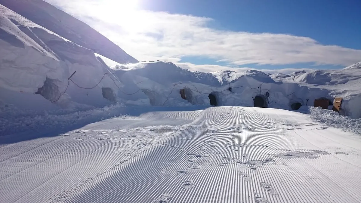 Am Ende des Tages hat Schwendinger das gesamte Iglu mit geschwungenen Blumenmustern geschmückt. Dann heißt es für sie und ihre Kollegen "Feierabend". Einige übernachten in der Berghütte, andere fahren mit der Seilbahn wieder ins Tal hinunter.