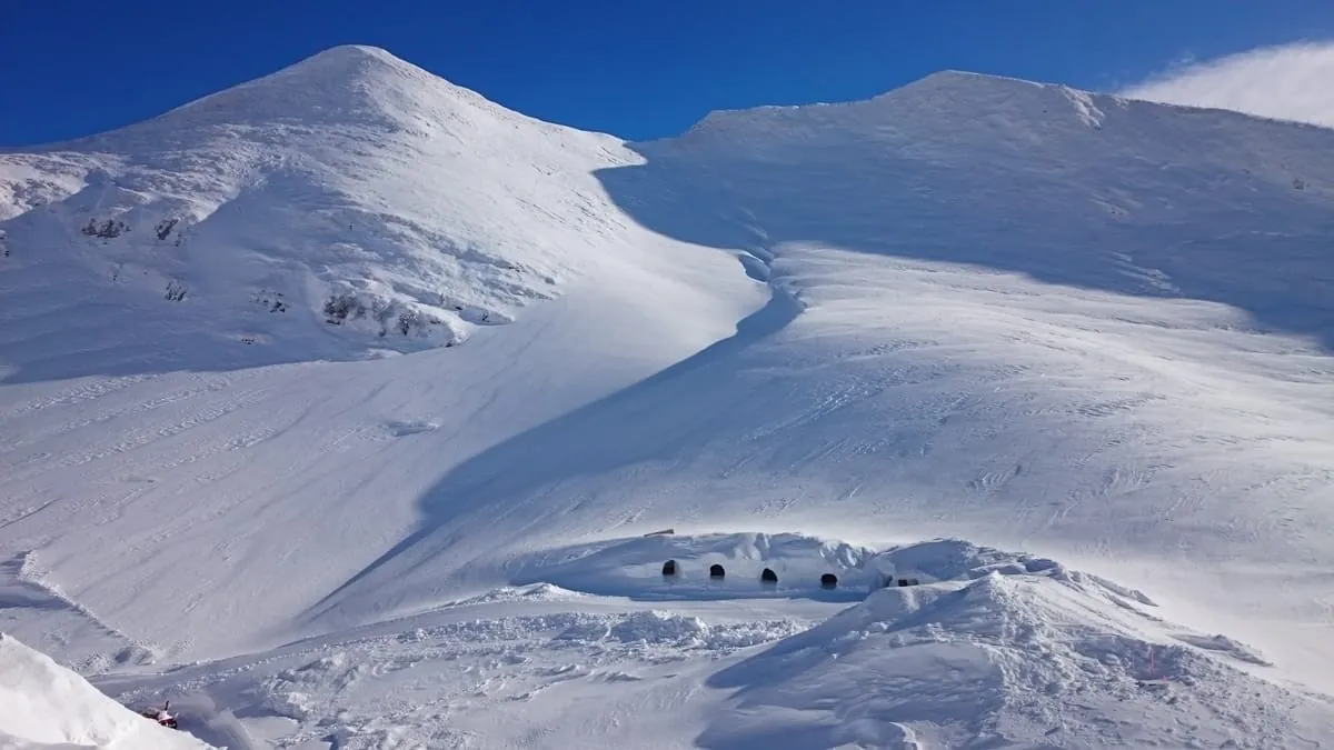 Aufbau der Iglu Lodge auf dem Nebelhorn