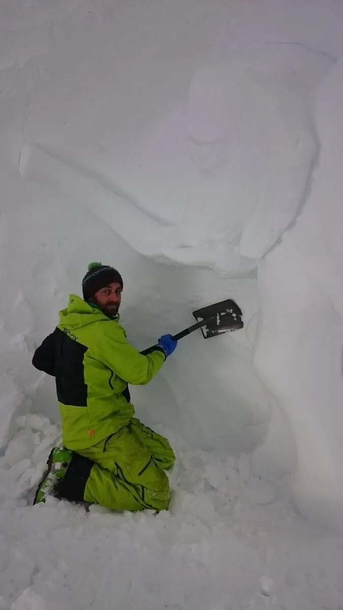 Figuren aus Eis und Schnee hatte er früher schon entworfen, aber noch nicht in dieser spektakulären Location. Als er von dem Projekt hörte, war er sofort begeistert: "Die Arbeit hier auf dem Berg macht mir sehr viel Spaß. Sie ist aber nicht für jeden geeignet. Die Höhenluft und die Kälte vertragen viele nicht. Wir hatten auch schon Kollegen, die nach ein oder zwei Tagen abgebrochen haben."