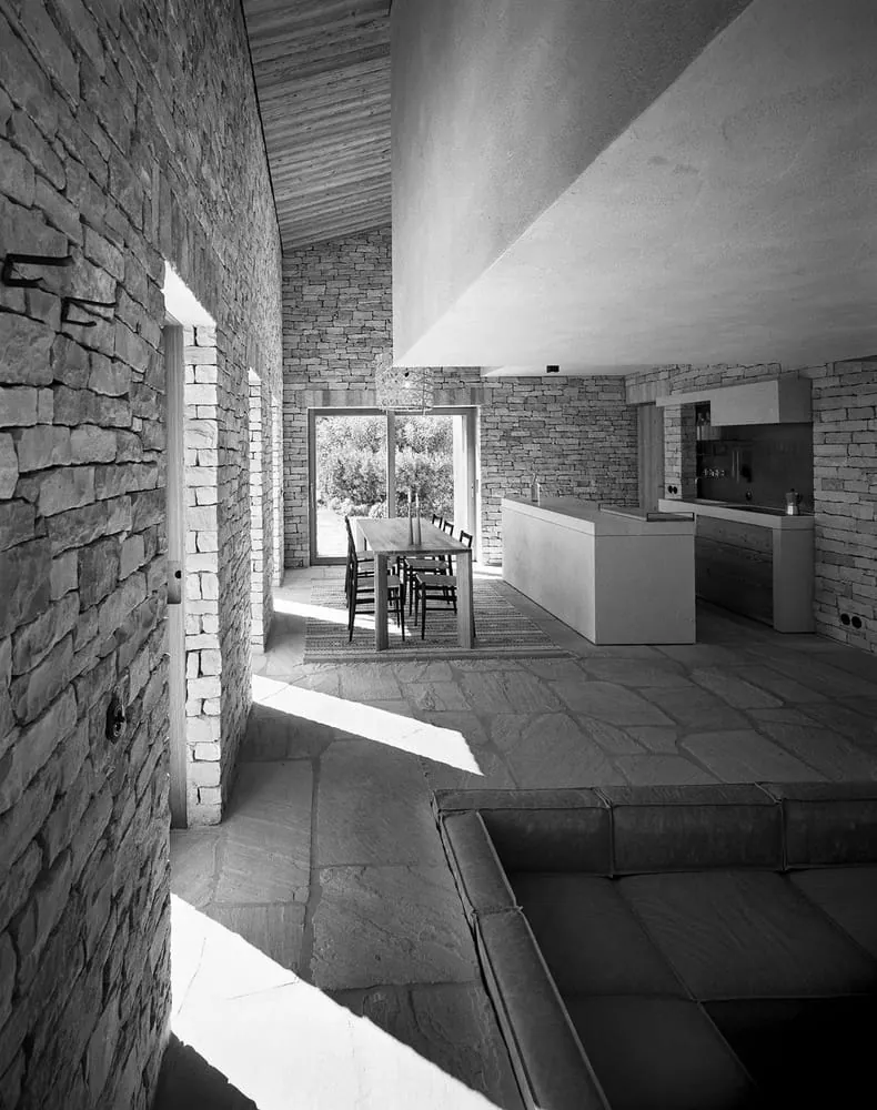 … Das Rustico und die „Limonaia“ werden mit traditionellem Bruchsteinmauerwerk, jedoch zweischalig mit Kerndämmung wieder aufgebaut und bewahren somit einen explizit rauen, haptischen Charakter. Das Ensemble vermittelt eine warme, distinguiert rustikale Atmosphäre.