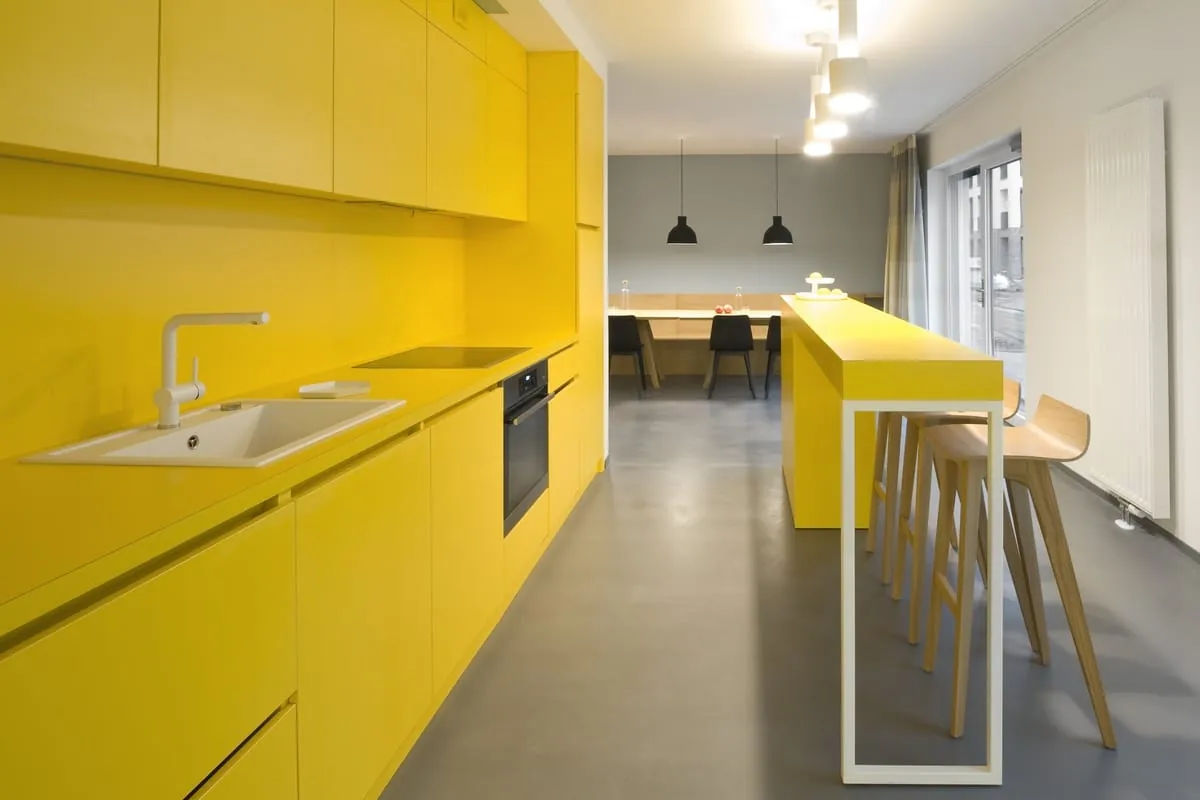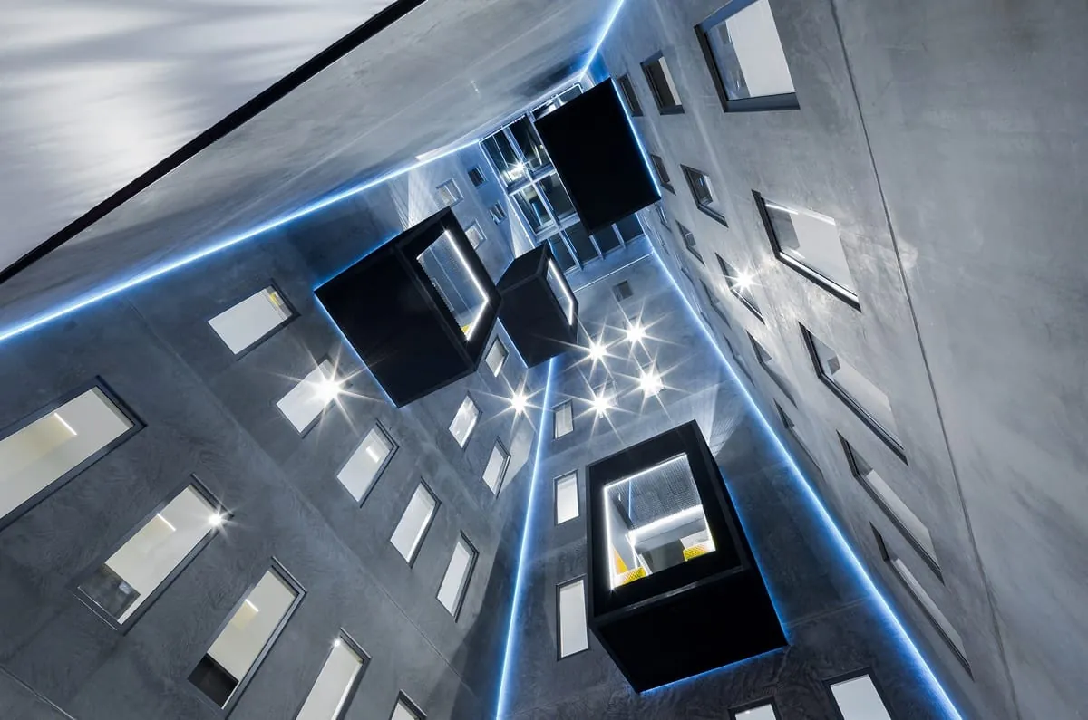 … Die Farbidee, begleitet durch das ganze Gebäude, bietet Orientierung. Jede Abteilung hat ihre eigene Farbe und Identität. Farbwelten. Arbeitswelten. Die Räume machen neugierig, stiften Beziehungen und erzeugen Gefühle. Funktion, Konstruktion, Präzision, Detail und Material wurden konsequent weitergedacht.