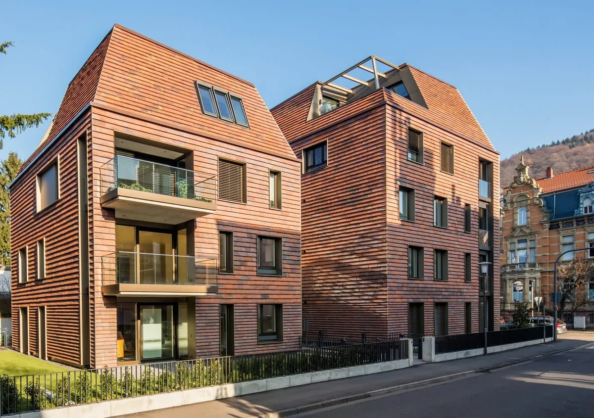 Die Tegula-Villen liegen im gründerzeitlich geprägten Heidelberger Stadtteil Neuenheim. Das Gebäude vermittelt sowohl städtebaulich als auch in seiner Materialität zwischen alter und neuer Bebauung. Der gründerzeitliche Baustil der Umgebung wird aufgenommen und modern weiterentwickelt. Zwei klar lesbare skulpturale Einzelbaukörper verankern den Baukörper in der vielfältigen Dachlandschaft des Quartiers…