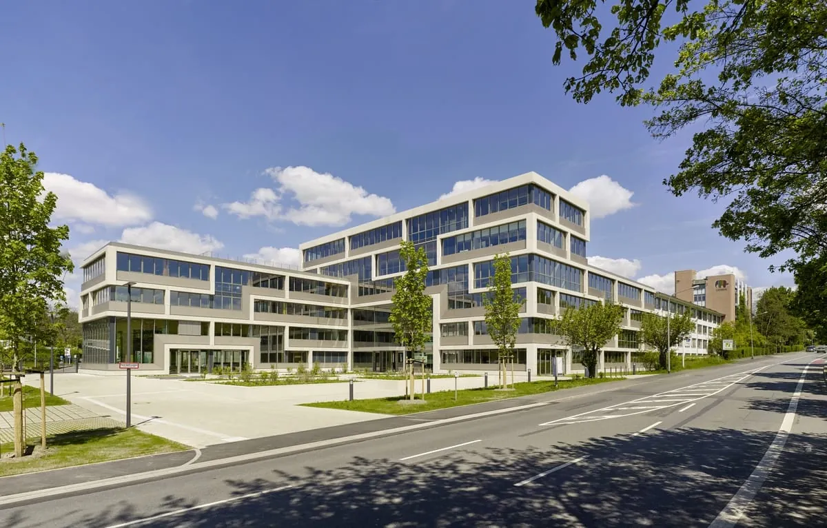 Ein Büroturm als Architekturskulptur an der Autobahn zwischen Nürnberg und Regensburg. Weithin sichtbar steht der neue markante Verwaltungsbau der FIT AG an der A3 in der Oberpfalz. Eine schimmernde Chamäleonhaut mit wechselndem Farbenspiel außen, innen der Blick zum Himmel durch das offene Atrium über die sieben Geschosse…