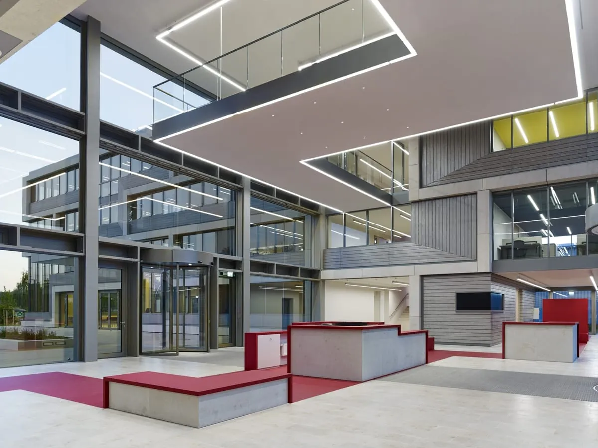 Die neue Firmenzentrale der DAW SE ist ein Vorzeigeobjekt für ihre Produkte und – nach wissenschaftlichen Gesichtspunkten entwickelten – Farbkonzepte. Die Vielfalt der Farbe zeigt sich im Inneren. Eine Farbskulptur im Foyer heißt willkommen und zieht sich als handwerklicher, kraftvoller roter Pinselstrich in Form eines Foyermöbels durch den Raum, verbindet alles…
