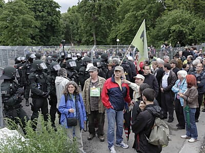 Doch obwohl noch mehr Demonstranten auf das Gelände gepasst hätten, füllt sich die Baustelle nicht ganz. Ein junger Mann hat handfeste Gründe, weshalb er sich nicht auf die Baustelle traut. "Mir steckt der 'Schwarze Donnerstag' noch in den Knochen", sagt er mit Blick auf den 30. September 2010 als die Polizei Pfefferspray, Schlagstöcken und Wasserwerfer gegen die Demonstranten einsetzte. "Ich weiß nicht, wie die Polizei vorgeht."