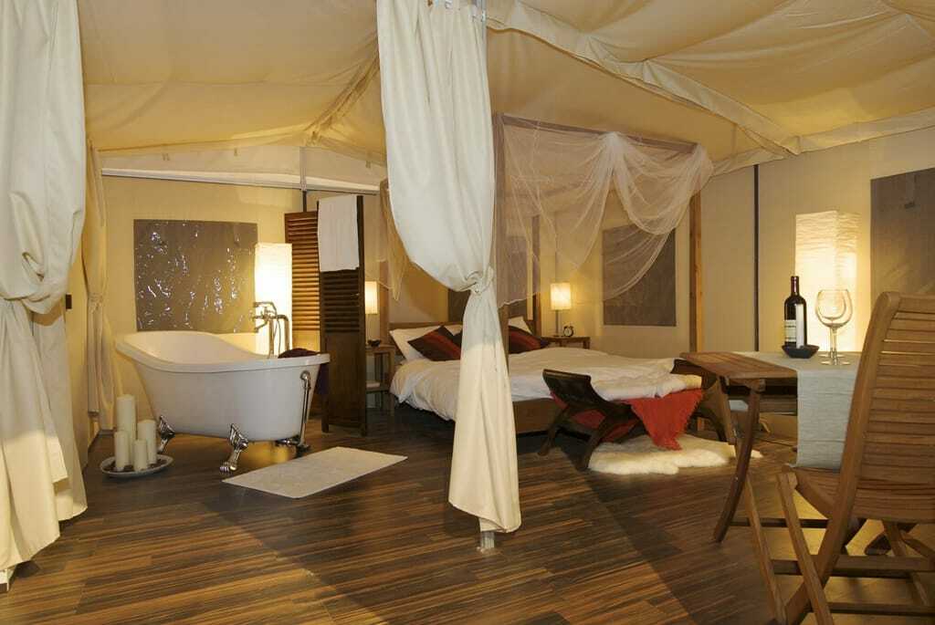 Wer kennt das nicht, enge Zweimannzelte, muffige Schlafsäcke und Ravioli vom Gaskocher. Das war noch richtiger Camping-Urlaub – ein Lebensgefühl. Heute logiert man in einem Luxuszelt, schläft im frischüberzogenen Himmelbett und natürlich gibt es eine eigene Dusche oder Badewanne.