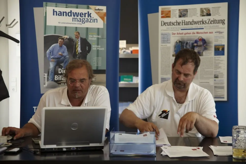 Rauchende Köpfe: Robert Domina (li.), Nutzfahrzeugexperte aus Eichstätt, und Christian Koch, Kfz-Sachverständiger der Dekra in München, werten als Jury die Fragebögen der Tester aus.