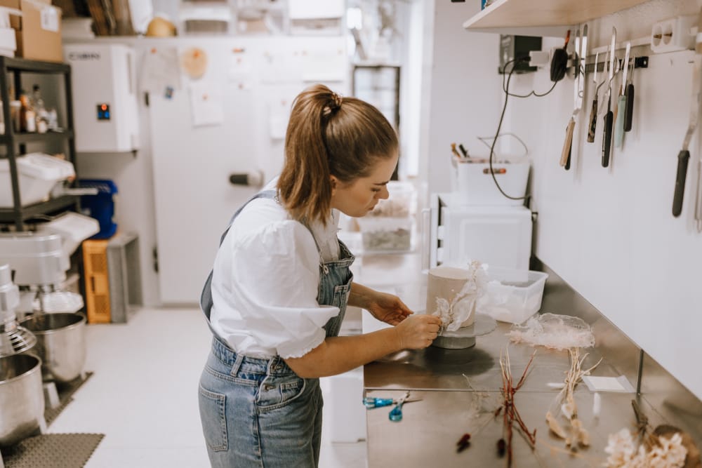 Alles begann in den Räumen einer Hochzeitslocation, die pandemiebedingt geschlossen hatte. "Hier konnte ich die Küche nutzen und als ich gemerkt habe, dass die Aufträge immer mehr werden, haben wir dann eine eigene Backstube gemietet", berichtet sie. Der Umstieg von der Teilzeit- auf eine Vollzeitkonditorei ging ähnlich schnell und vor allem ähnlich aus dem Bauch heraus wie ihre Entscheidung, überhaupt die Meisterausbildung zu absolvieren. Denn eigentlich wollte die Konditorin den Beruf schon vor der Gesellenprüfung aufgeben.