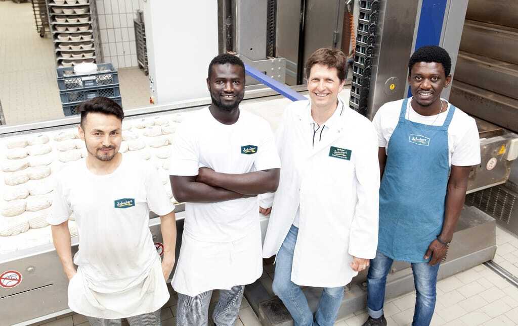 Die Belegschaft der Bäckerei Schubert in Augsburg war schon immer bunt gemischt. Derzeit sind die Hälfte der Auszubildenden im Betrieb Geflüchtete. Das hat auch mit der Geschichte der Inhaberfamilie zu tun.