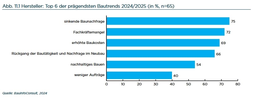 Die Bau-Branche befindet sich weiter in einem schwierigen Marktumfeld, geprägt von Fachkräftemangel und hohen Baukosten. Doch während die Konjunktur schwächelt, warten in der Zukunft neue Geschäftschancen. Das sind die Bautrends 2025.