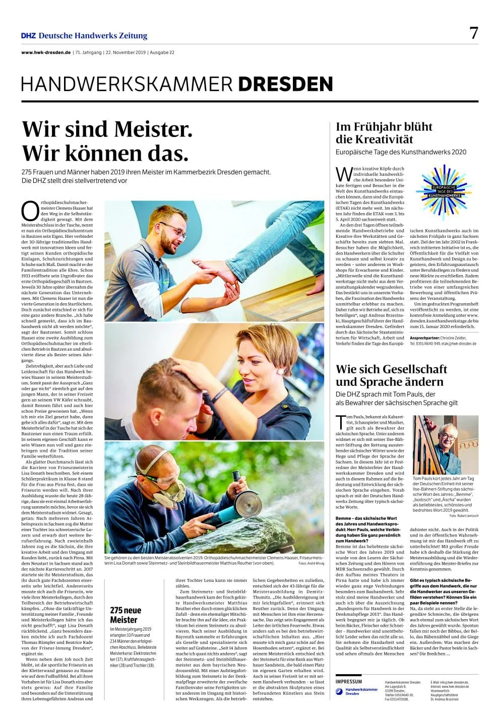 © DHZSieger "Schönste Kammerseite-Sonderlayout 2021" HWK Dresden Download PDF -