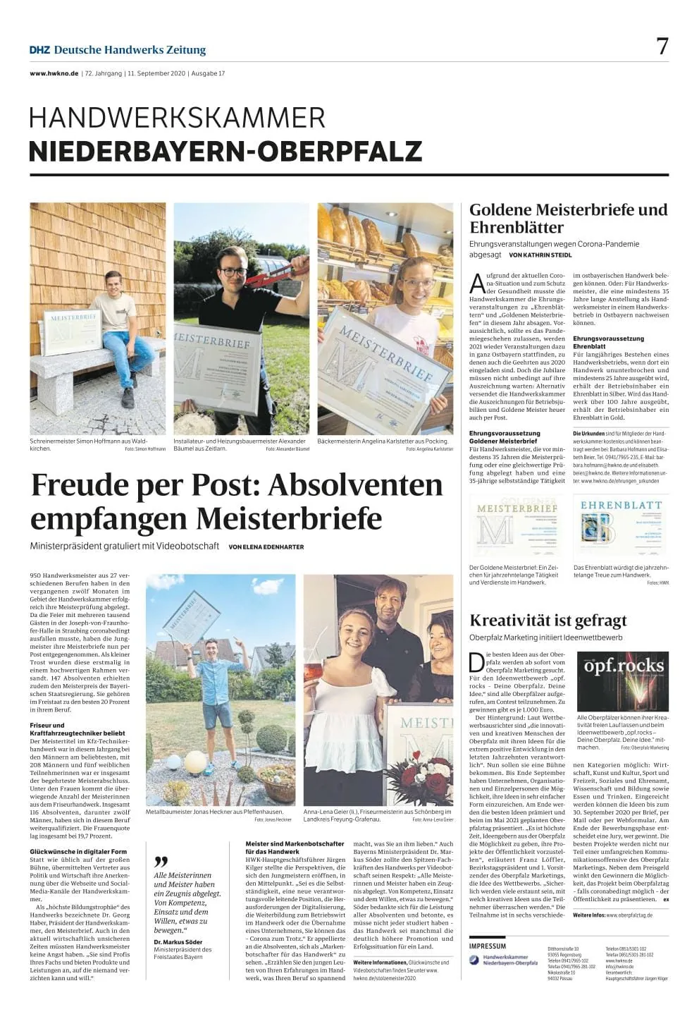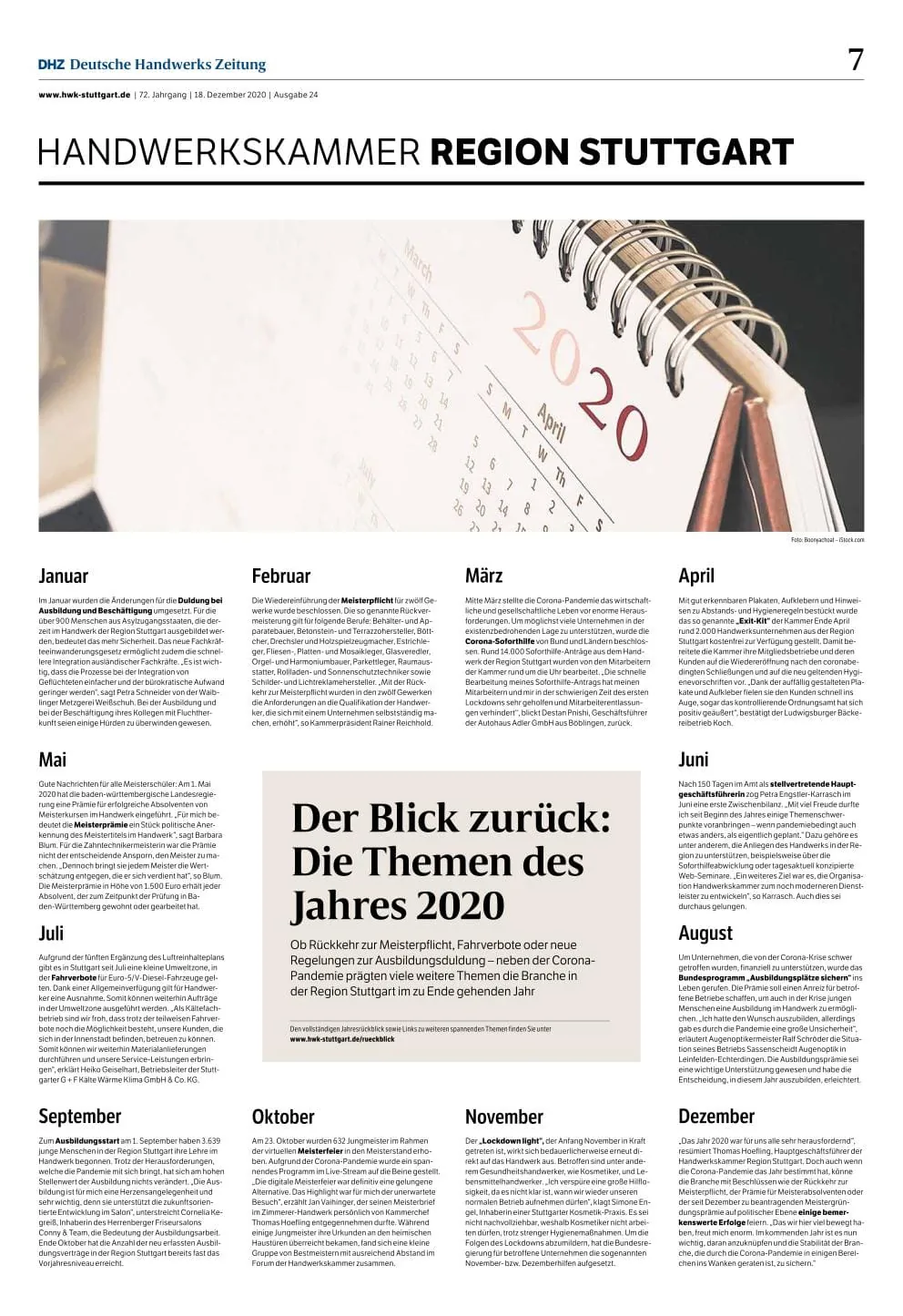 © DHZSieger "Schönste Kammerseite 2020-Sonderlayout" HWK Heilbronn Download PDF -