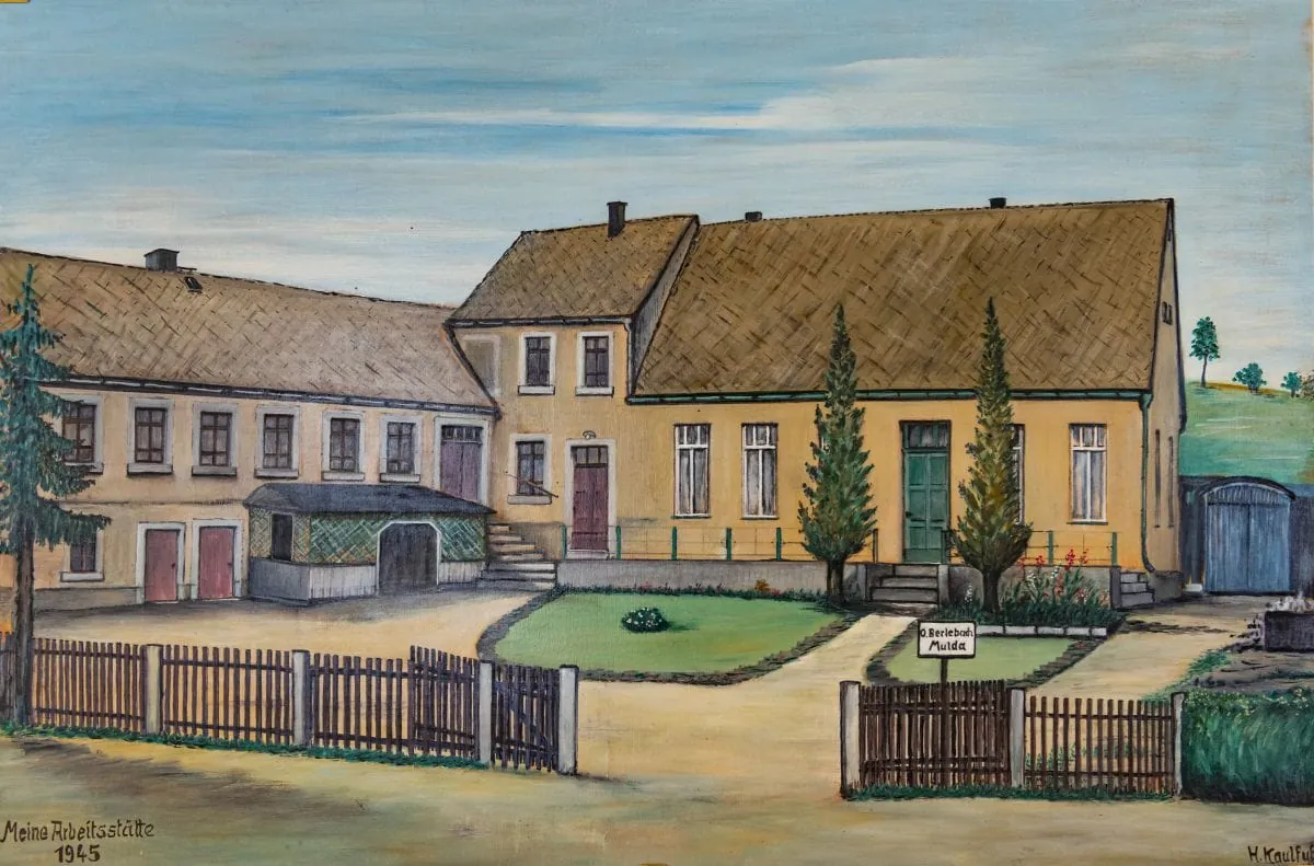 So sah der Firmensitz nach dem Zweiten Weltkrieg aus, zeichnerisch festgehalten von einem damaligen Mitarbeiter.