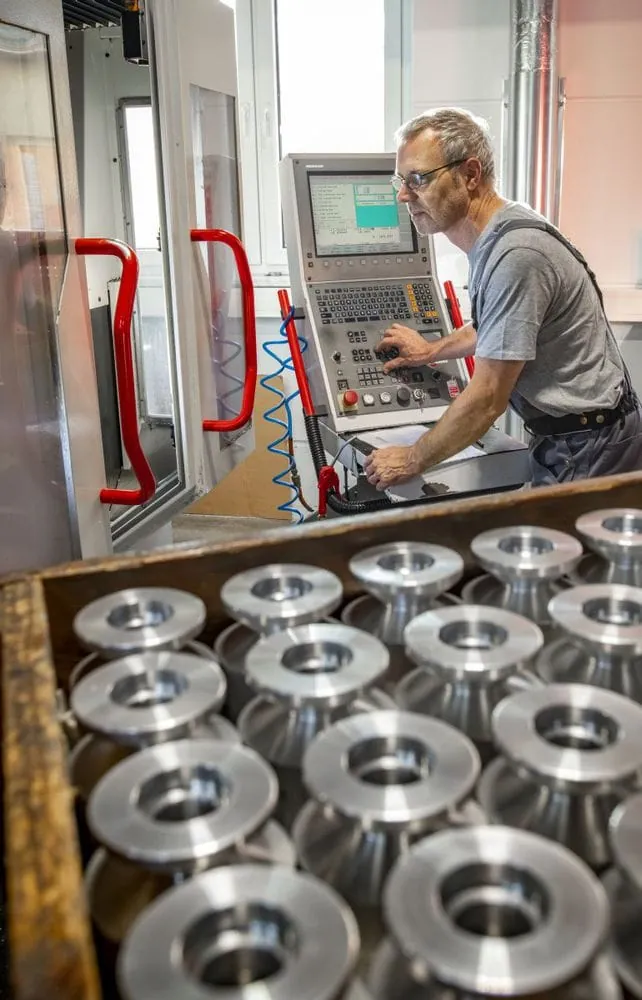 Jens Neuber fertigt Rohlinge für Stativköpfe an der CNC-Fräse.
