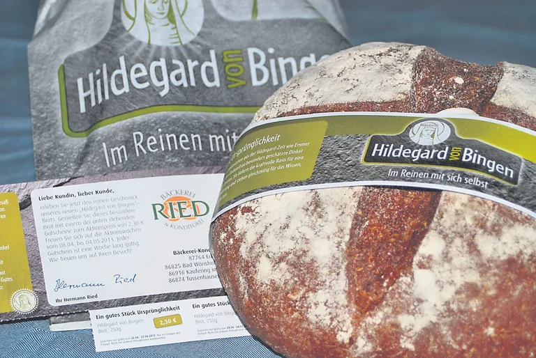 Deshalb hat er jetzt auf eine Rezeptur und die Werbung seines Zulieferers zurückgegriffen, von dem er seine Backrohstoffe bezieht: "Wir haben das Hildegard-von-Bingen-Brot in unser Angebot aufgenommen. Darin verwenden wir altherkömmliche Getreidesorten wie Emmer, Einkorn und Dinkel. Das kommt unseren Kunden entgegen, die immer bewusster auswählen, was sie essen."