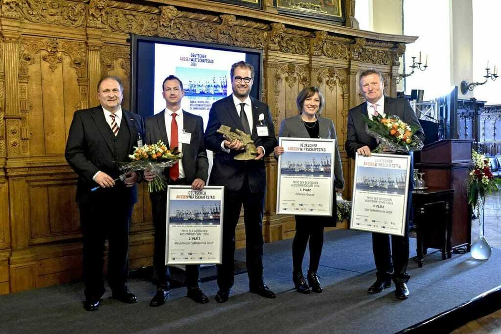 Jubel beim Preis der deutschen Außenwirtschaft 2016: Mit der Mangelberger Elektrotechnik GmbH aus Bayern und der Jüke Systemtechnik GmbH aus Westfalen gingen zwei Handwerksbetriebe als zweite und dritte Sieger hervor. Das meldet der Zentralverband des Deutschen Handwerks (ZDH).