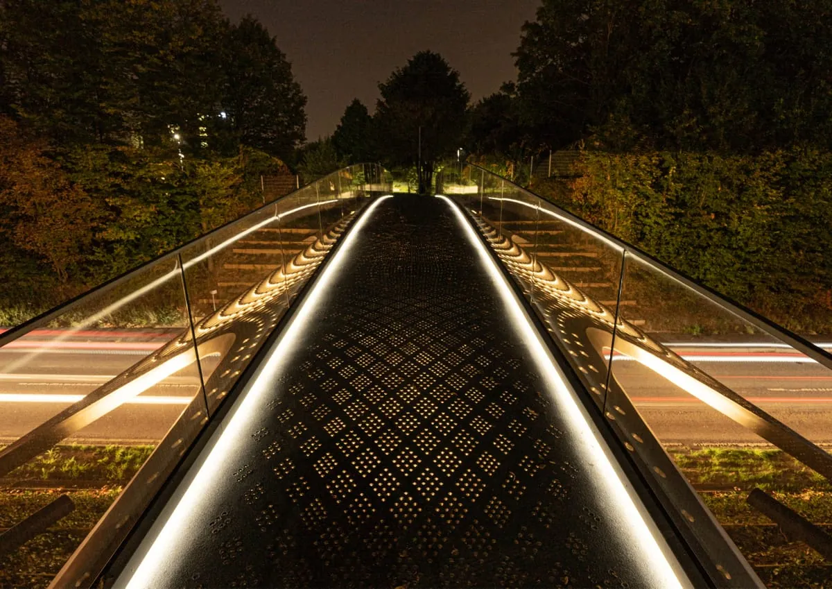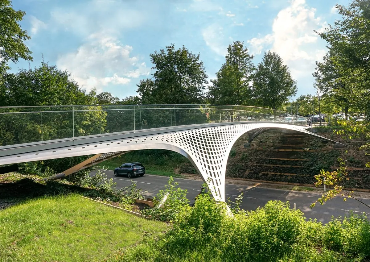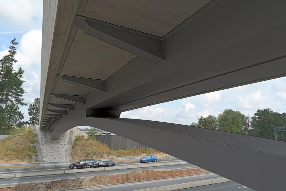 Entsprechend der Vorgabe, die sechsspurige Autobahn stützenfrei zu überspannen, wurde das Überführungsbauwerk als filigrane Stahlverbundkonstruktionen vorgeschlagen. Beim Entwurf wurde großer Wert auf eine nachhaltige Gestaltung gelegt. Durch den sparsamen Einsatz von Ressourcen wird der Entwurf allen Anforderungen des ökonomischen und ökologischen Bauens gerecht