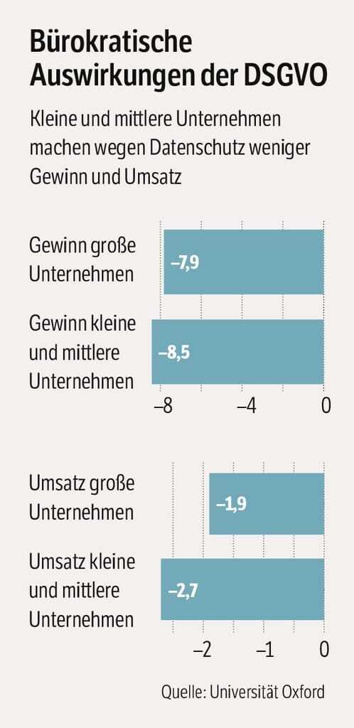 Ein Beispiel: Die seit Mitte 2018 in Kraft getretene Datenschutz-Grundverordnung (DSGVO). Die Universität Oxford fand nun heraus, dass sich die DSGVO bei kleinen und mittleren Unternehmen negativer auf Umsatz und Gewinn auswirkt als bei großen Unternehmen.