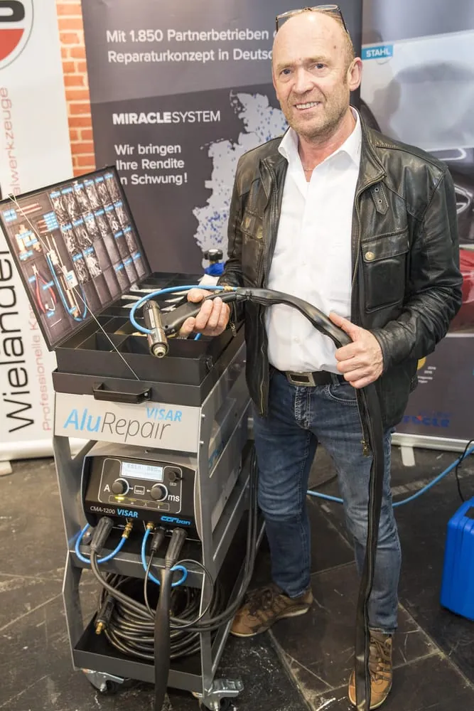 Das AluRepair Visar von Carbon ist ein intelligentes Schweißgerät mit Hubzündungstechnologie. Die Innovation löst viele Probleme bei der Reparatur moderner Karosserien aus Aluminium, im Multi-Material-Design (MMD) sowie bei Hybrid- beziehungsweise Elektrofahrzeugen. Größere Masse- oder Geräteträgerbolzen können so geschweißt und Stanznieten prozesssicher gezogen werden. Der Anwender wählt die korrekten Schweißparameter einfach aus einer umfangreichen, update-fähigen Bibliothek aus.