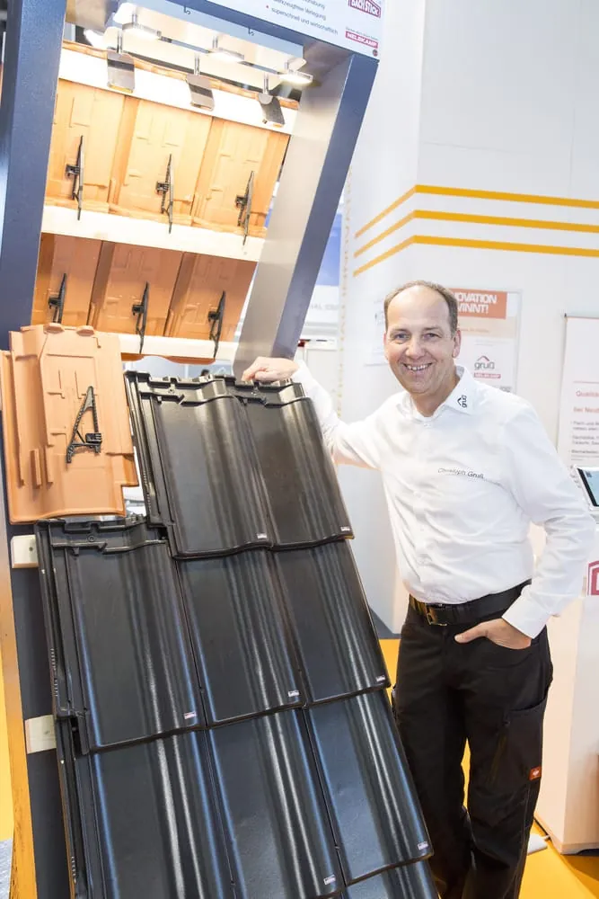 Einfach und schnell werden mit dem Dachstick Dachziegel sturmsicher befestigt. Dachdeckermeister Christoph Gruß aus Gumperda hat die Windsogsicherung entwickelt. Im Gegensatz zu Sturmklammern aus Metall wird der Dachstick schon fertig mit dem Dachziegel geliefert. Zur Befestigung wird das Kunststoff-Element einfach aufgeklappt und hinter die Dachlatte geschoben. Der Dachstick wird derzeit mit Ziegeln der Dachziegelwerke Nelskamp werksfertig geliefert.