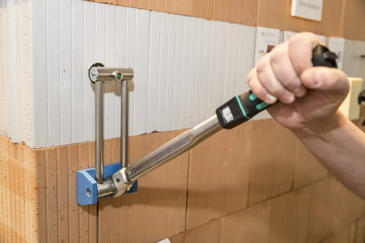 Ohne großen Aufwand und schnell können mit dem Moment-Prüfgerät Dübel getestet werden. Mit verschiedenen Adaptern ist das für unterschiedliche Dübel mit verschiedenen Auszugswerten möglich. Das funktioniert bei Küchen, schweren Gegenständen ebenso wie bei Gerüsten, auch an Decken, sehr engen Stellen oder auf problematischen Untergründen wie Styropor. Dazu befestigt man auf dem Prüfgerät einen Drehmomentschlüssel und stellt den zu prüfenden Wert ein. Mittels der Hebelwirkung des Drehmomentschlüssels ertönt ein "Klicken" als Zeichen, dass der Dübel die Prüflast hält.