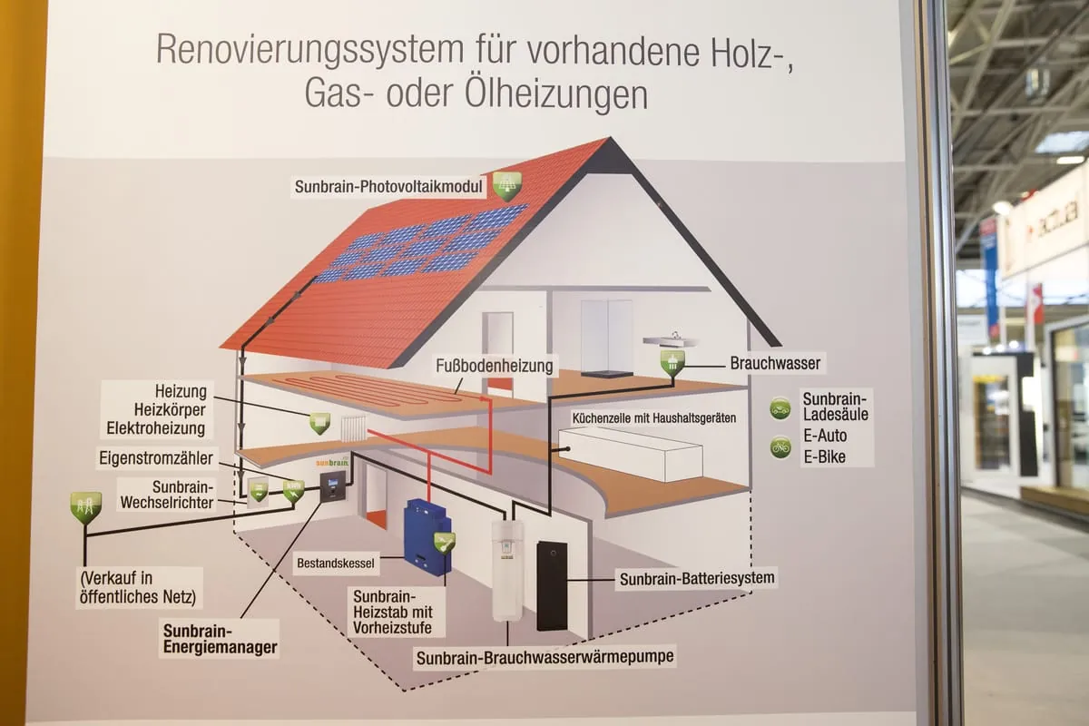 Der Gebäude- und Energiemanager Sunbrain des Unternehmens aus dem baden-württembergischen Hayingen-Oberwilzingen verteilt den Solarstrom aus einer Photovoltaikanlage im Haus und kann verschiedene Bereiche sowie Speicher- oder Heizsysteme des Hauses nach der gewünschten Priorität bedienen. Das Steuergerät kann beispielsweise zuerst den Haushalt regeln, dann Wärme für Brauchwasser bereitstellen, danach die Heizung speisen und zum Schluss noch die Autoladestation oder den Akku füllen. Das Steuerungskonzept wird individuell auf den Strombedarf des Haushalts abgestimmt. Auf diese Weise kann der gesamte erzeugte Solarstrom im Haus verwendet werden.