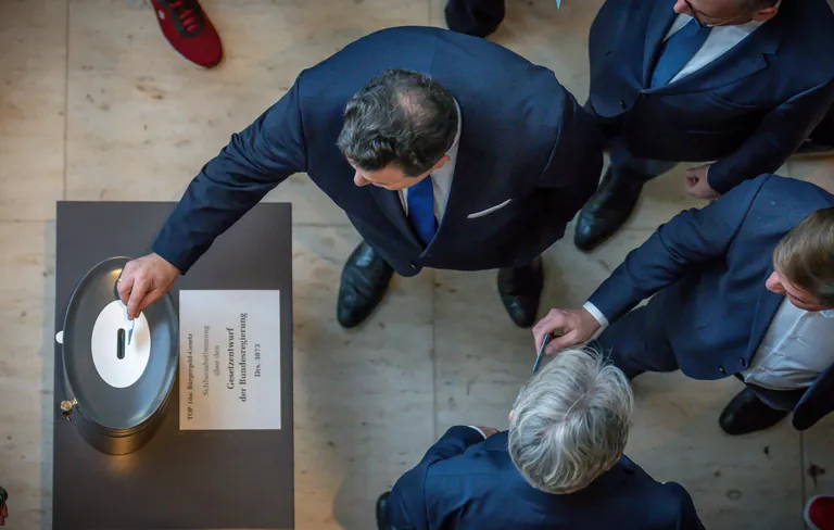 Der Bundestag hat das von der Ampel-Koalition geplante Bürgergeld auf den Weg gebracht. SPD, Grüne und FDP stimmten am Donnerstag mit ihrer Mehrheit für das Gesetz. In namentlicher Abstimmung votierten 385 Abgeordnete dafür, 261 dagegen. Es gab 33 Enthaltungen. Das Bürgergeld soll mit dem Jahreswechsel schrittweise das heutige Hartz-IV-System ablösen.