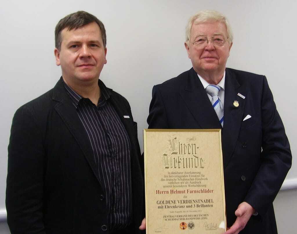 Der Bonner Schuhmachermei ster Farnschläder tritt nach 17 Jahren von seinem Amt zurück. Im vergangenen Juni hatte er für seinen Einsatz im Handwerk das Bundesverdienstkreuz erhalten.