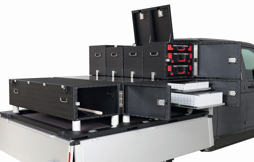Ziel der Entwicklung von VW und Würth ist es, die Angebotslücke zwischen klassischen Kofferaufbauten mit Fahrzeugeinrichtung und großen Containern zu schließen. Als Basis dient ein Leiterbefestigungssystem, das mittels Schnellspannverschluss auf dem Pritschenrahmen angebracht ist. Darauf werden offene und geschlossene Container unterschiedlicher Größen variabel zusammengesteckt, die einzeln abschließbar sind.