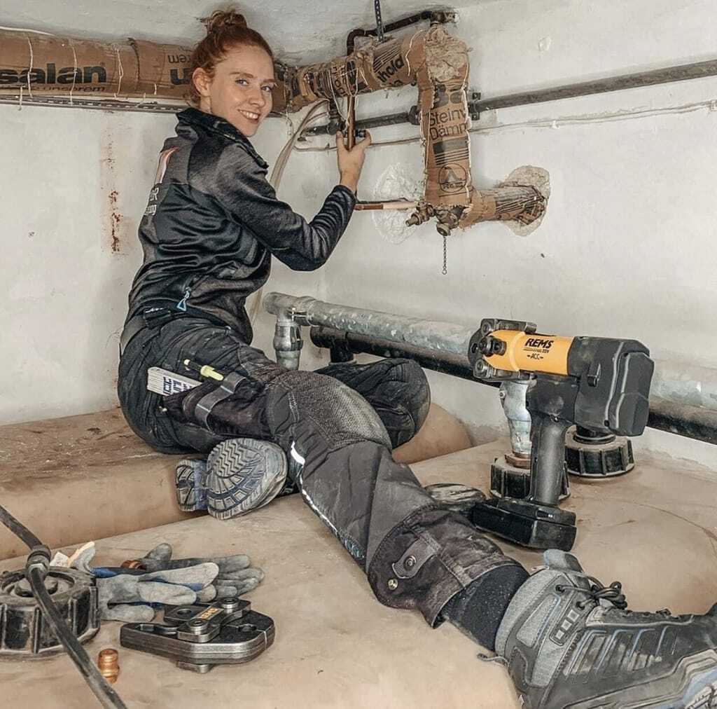 Sandra Hunke ist heute leidenschaftliche Anlagenmechanikerin für SHK. Als reichweitenstarke Influencerin setzt sie sich für mehr Frauen im Handwerk ein. - © Sandra Hunke