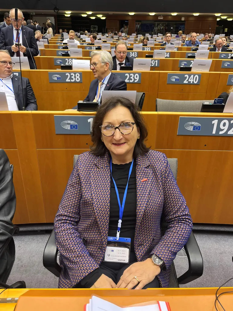 Carola Greiner-Bezdeka, Elek­troinstallateurmeisterin aus Lichtenau war ebenfalls Teilnehmerin einer nachgestellten Plenarsitzung des Europäischen Parlaments in Brüssel. - © ZDH