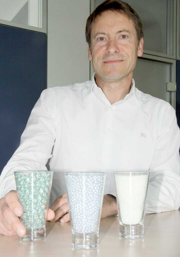 Die Initialzündung kam bei Ochs mit einer Kundenanfrage. Ein Wasserversorger aus Nürnberg musste alle fünf bis zehn Jahre eine Brunnenreinigung durchführen lassen. Ob man nicht so etwas wie Glaskugeln benutzen könne, schlug der Kunde vor. "Warum nicht, doch woher nehmen?", fragte sich Frank Herrmann. Bis zu 50 Tonnen Füllmaterial braucht man schließlich pro Brunnen. Solche Glaskugelbestände gab es nirgendwo.