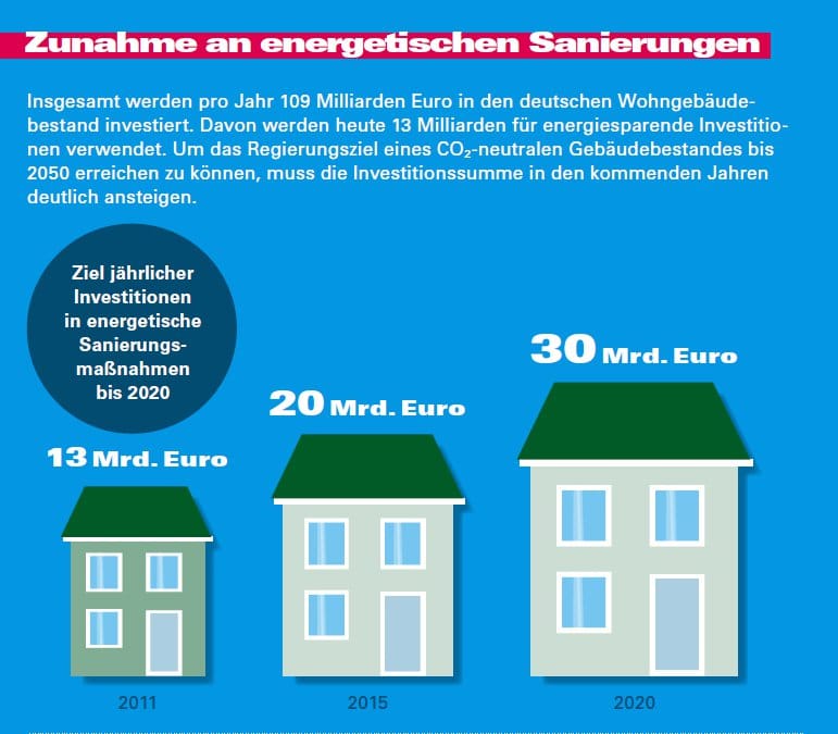 Dahinter steht auch ein ambitioniertes Ziel der Bundesregierung: Bis zum Jahr 2050 soll nahezu der gesamte Gebäudebestand in Deutschland klimaneutral modernisiert werden.