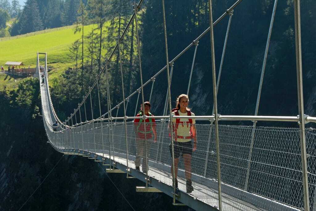 Eines der vielen Höhepunkte am Wegesrand - die Hängebrücke bei Holzgau - © Foto: Verein Werbegemeinschaft Lech-Wege