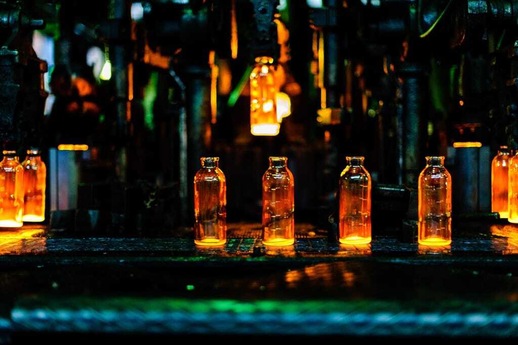 Flaschenherstellung in Glasfabrik.