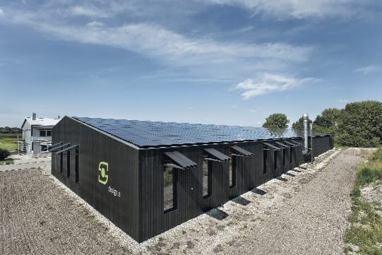 Bei Sonnenlicht schimmert der dunkle Korpus der Halle design s. nicht nur schön, sondern erzeugt jede Menge Energie. - © Sebastian Schels