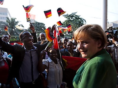 Auf der zweiten Station ihrer Afrika-Reise wurde Merkel von Santos mit militärischen Ehren empfangen. Es ist das erste Mal, das ein deutscher Bundeskanzler das Land besucht, Merkel sprach von einem "neuen Kapitel der bilateralen Beziehungen". Der Ausbau der Beziehungen solle in Form einer "politischen Partnerschaft" erfolgen, in die auch wirtschaftliche Aspekte mit einfließen solle.