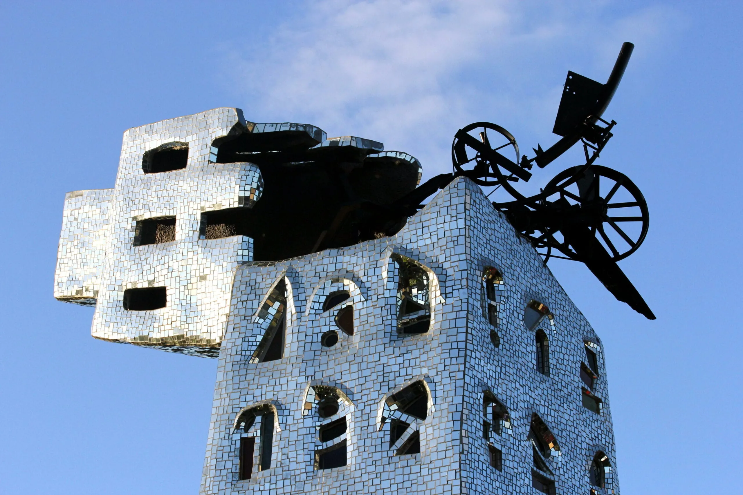 © Frank MuckEin Traum aus Mosaiksteinen: Der Giardino dei Tarocchi ist ein Park in der toskanischen Provinz Grosseto in der Nähe der Gemeinde Capalbio. Die französisch-amerikanische Künstlerin Niki de Saint Phalle hat dort ab 1979 22 zum Teil haushohe, begehbare und den Tarot-Karten nachempfundene Figuren (hier der Turm) erschaffen. Der Park begeistert durch seine überbordende Phantasie und Formenvielfalt. -