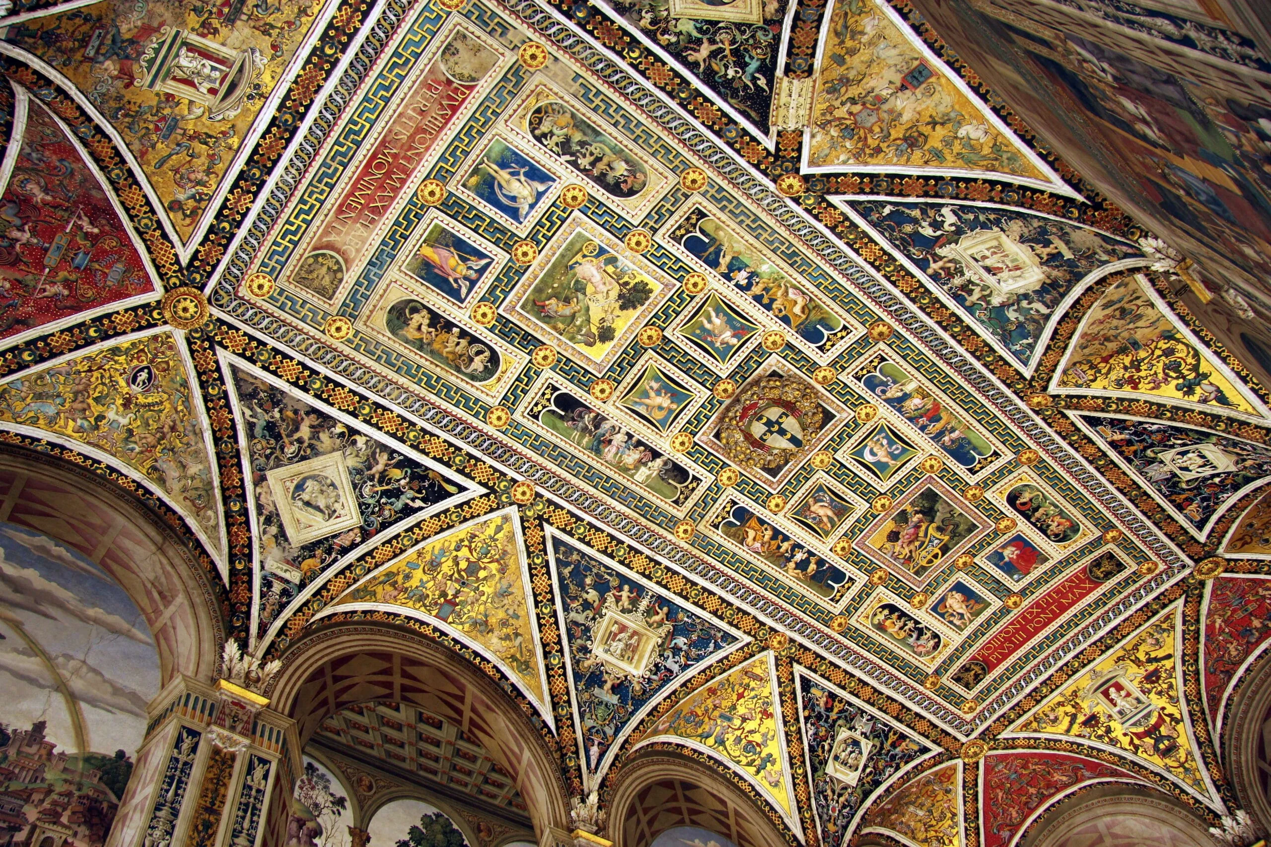 © Frank MuckMeist sieht man nur die Fassade des Doms in Siena. Aber mit einem Bild ist die Schönheit dieser Kirche kaum zu erfassen. Ebenso beeindruckend etwa ist die Ausstattung der angrenzenden Piccolomini-Bibliothek, die von Kardinal Francesco Piccolomini (später Pius III.) zu Ehren seines Onkels Pius' II. gegründet wurde. Hier befinden sich Pinturicchios berühmte Fresken mit Szenen aus dem Leben des späteren Papstes und eine Sammlung von Chorbüchern mit Malereien von Sieneser und anderen Künstlern. -